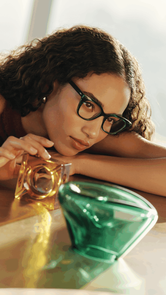 - Lunettes de Soleil : Les modèles solaires sont équipés de verres haut de gamme, souvent polarisés, offrant une protection supérieure contre les UV. Ils se parent des teintes sophistiquées imaginées par Patty Perreira, explorant une palette allant des couleurs vives aux nuances dorées, s’inspirant de la lumière du « Golden State ».
