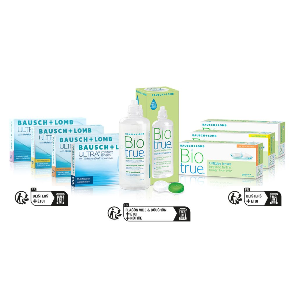 Information recyclage : les boites lentilles, blisters ou étuis sont a mettre dans le bac de tri. Lorsque nous recyclons, moins de déchets finissent dans les décharges et les usines d’incinération. En réutilisant des matériaux tels que le papier, le verre, le plastique et d’autres matériaux, nous réduisons les coûts de production et d’énergie et nous réduisons les impacts négatifs sur l’environnement.